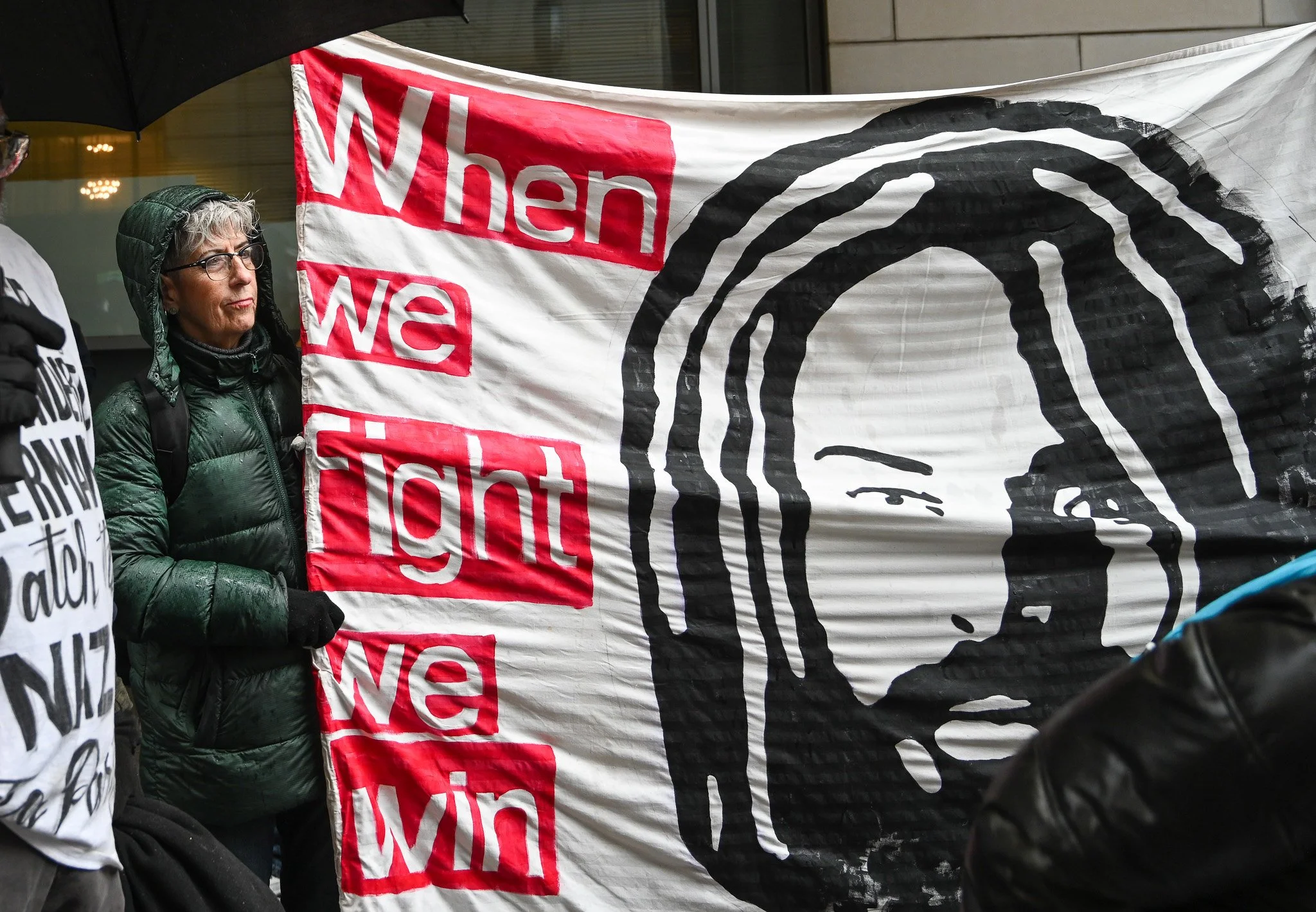 A protester with a banner at a rally to free Mumia Abu-Jamal. (Credit: Joe Piette/Flickr)