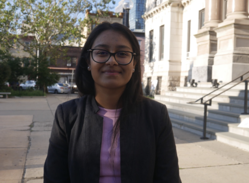 Azra Bano, co-chair of Vote16NJ, stands outside the steps of City Hall. She has been a resident of NJ since immigrating with her parents from India at the age of 3. (Zoe Van Gelder for Public Square Amplified)