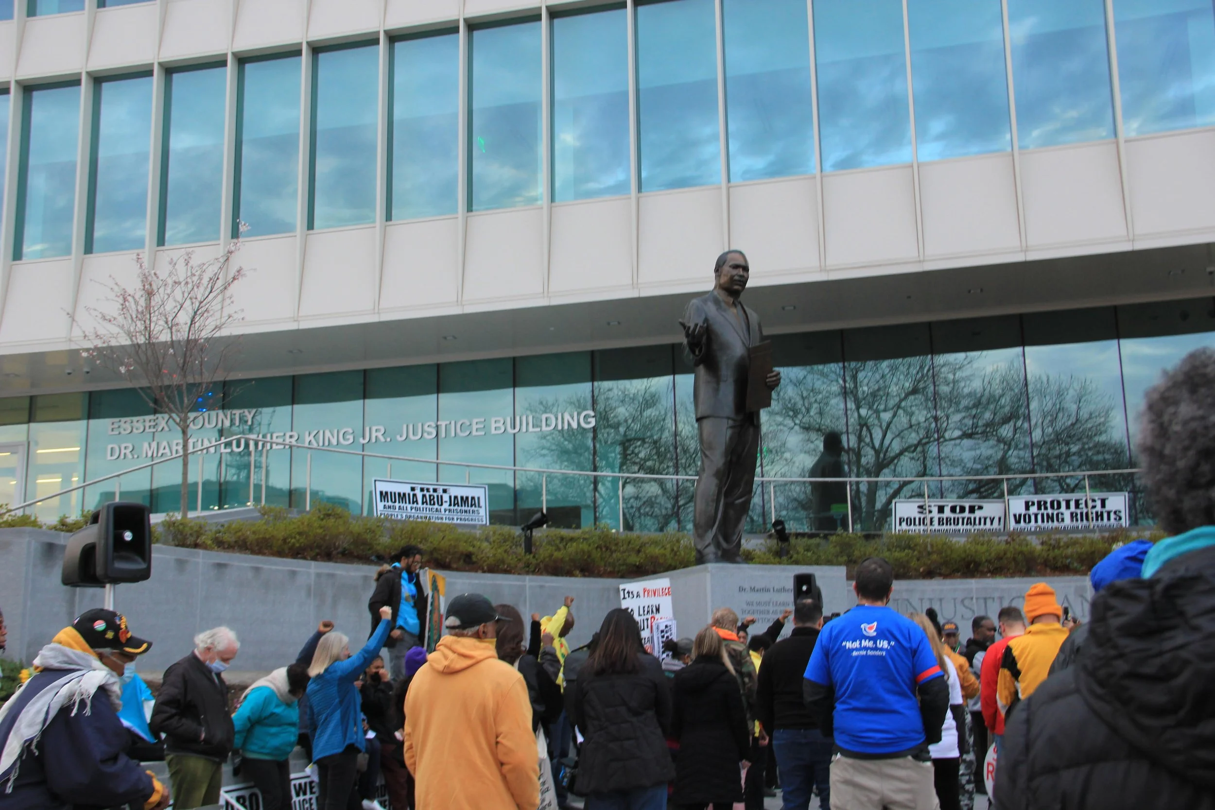 Protestors outside the Essex County Dr. Martin Luther King, Jr. Justice Building in Newark, NJ. (Josie Gonsalves for Public Square Amplified)