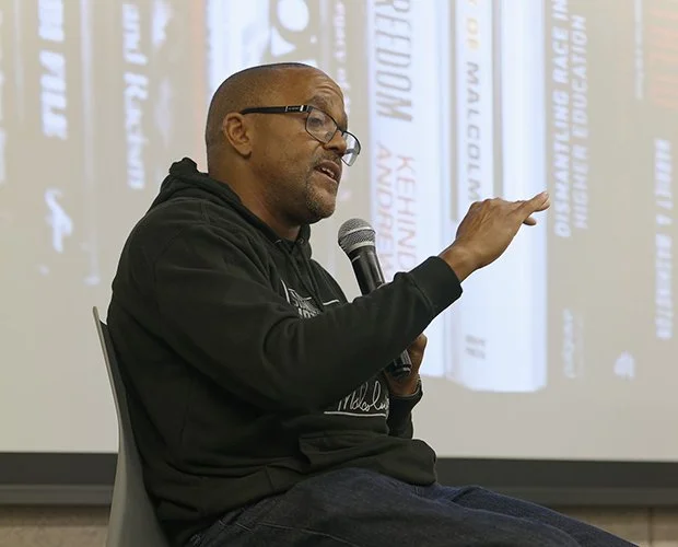 Photo credit: Author Kehinde Andrews, addressing participants at the Nobody Can Give You Freedom book at Express Newark on September 10, 2025. Photo courtesy of Dennis Hill Photography.