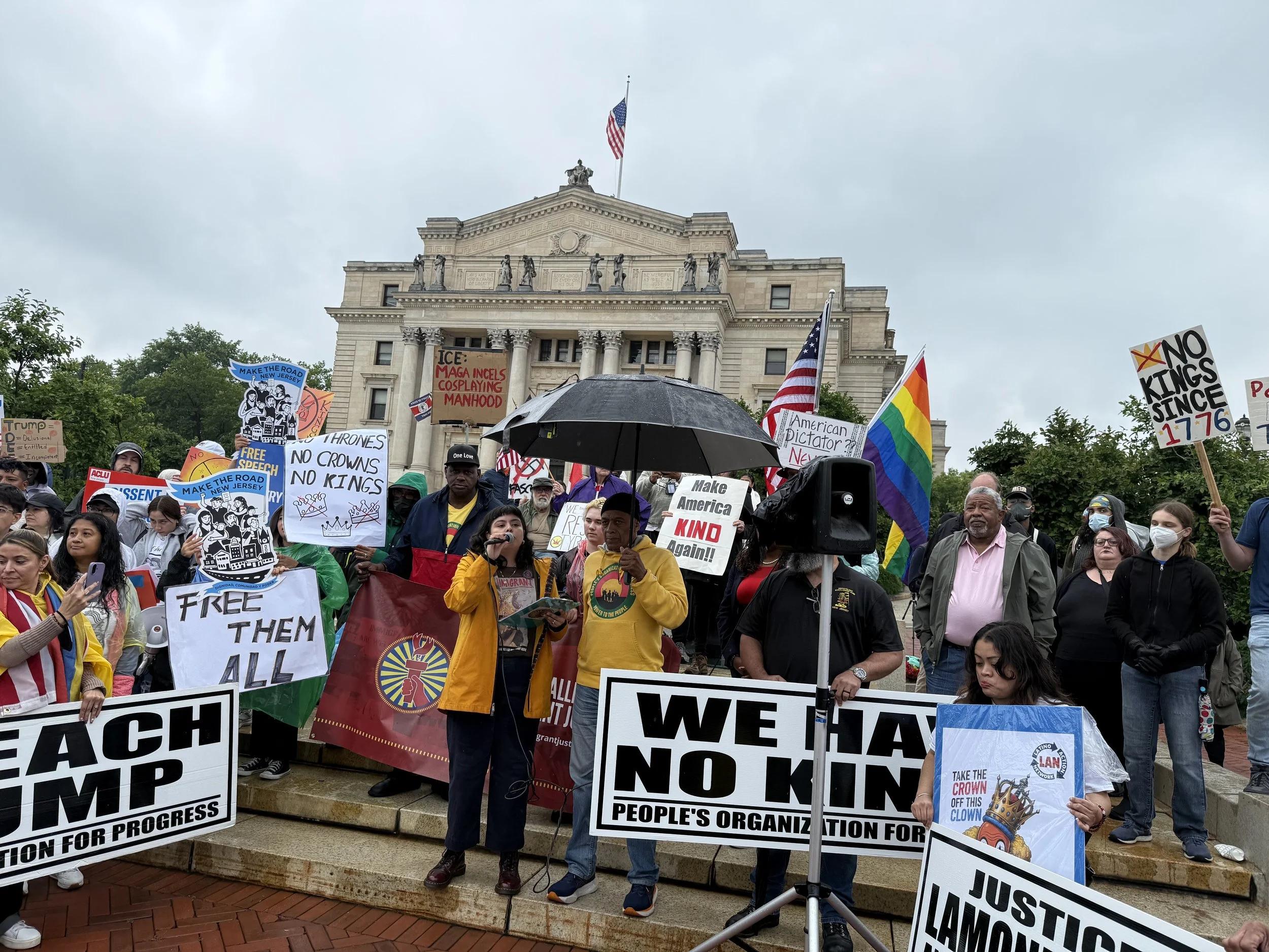 Photo credit: Community organizers speak at the No Kings rally in Newark, NJ on September 14, 2025. Photo courtesy of Hali Cooper (POP)