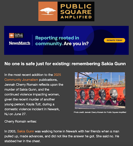Public Square Amplified (PSA) is a grassroots local nonprofit newsroom founded by a team of Black women with over 40 years of combined experience in the nonprofit, journalism, and community organizing sectors headquartered in Newark, New Jersey. PSA positions journalism as a civic tool and creates a pipeline for a new cadre of local journalists of color representing their geographic and ethnic community. Our reporting centers on democracy, social and economic justice, racial equality, and the immigrant experience. PSA recognizes that people of color must own the storytelling apparatus and shape our narratives if the fourth estate must exist as a call for democracy for all. Sign up for our newsletter and get them in your inbox.